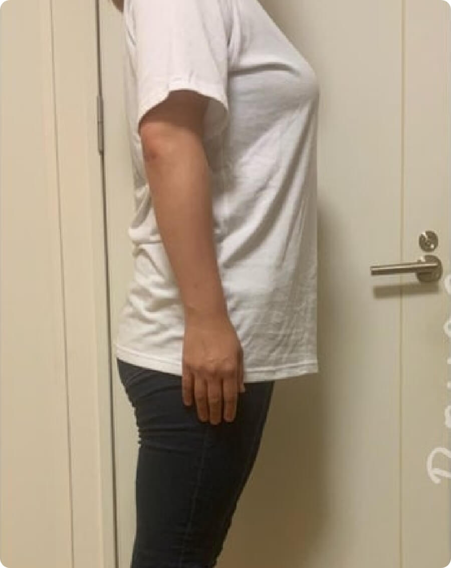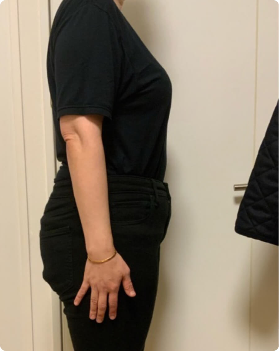 食事、日常生活のアドバイスを実行したら、3ヶ月5回の施術で体重-6kg、体脂肪-6%でボディが引き締まりました。